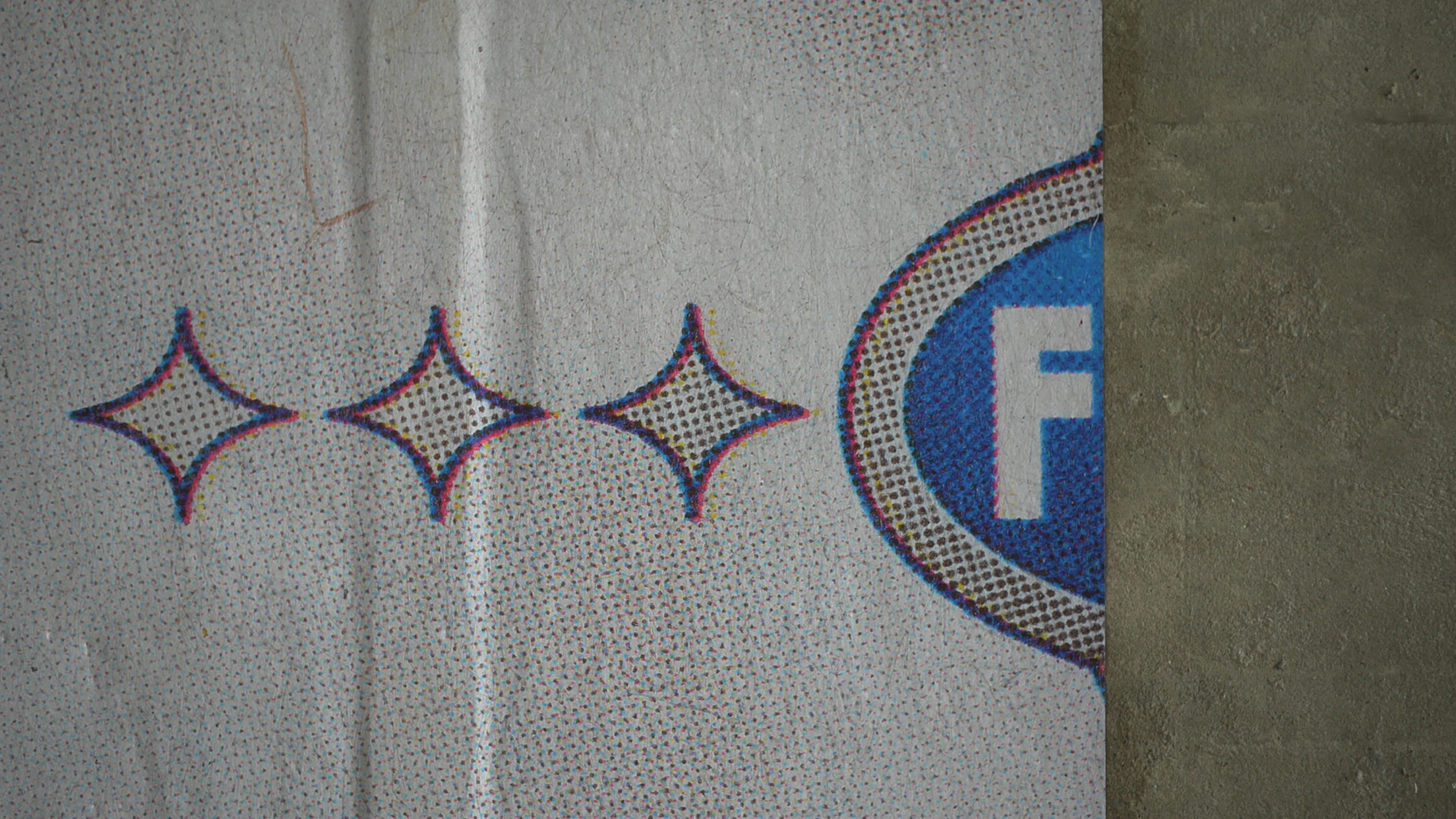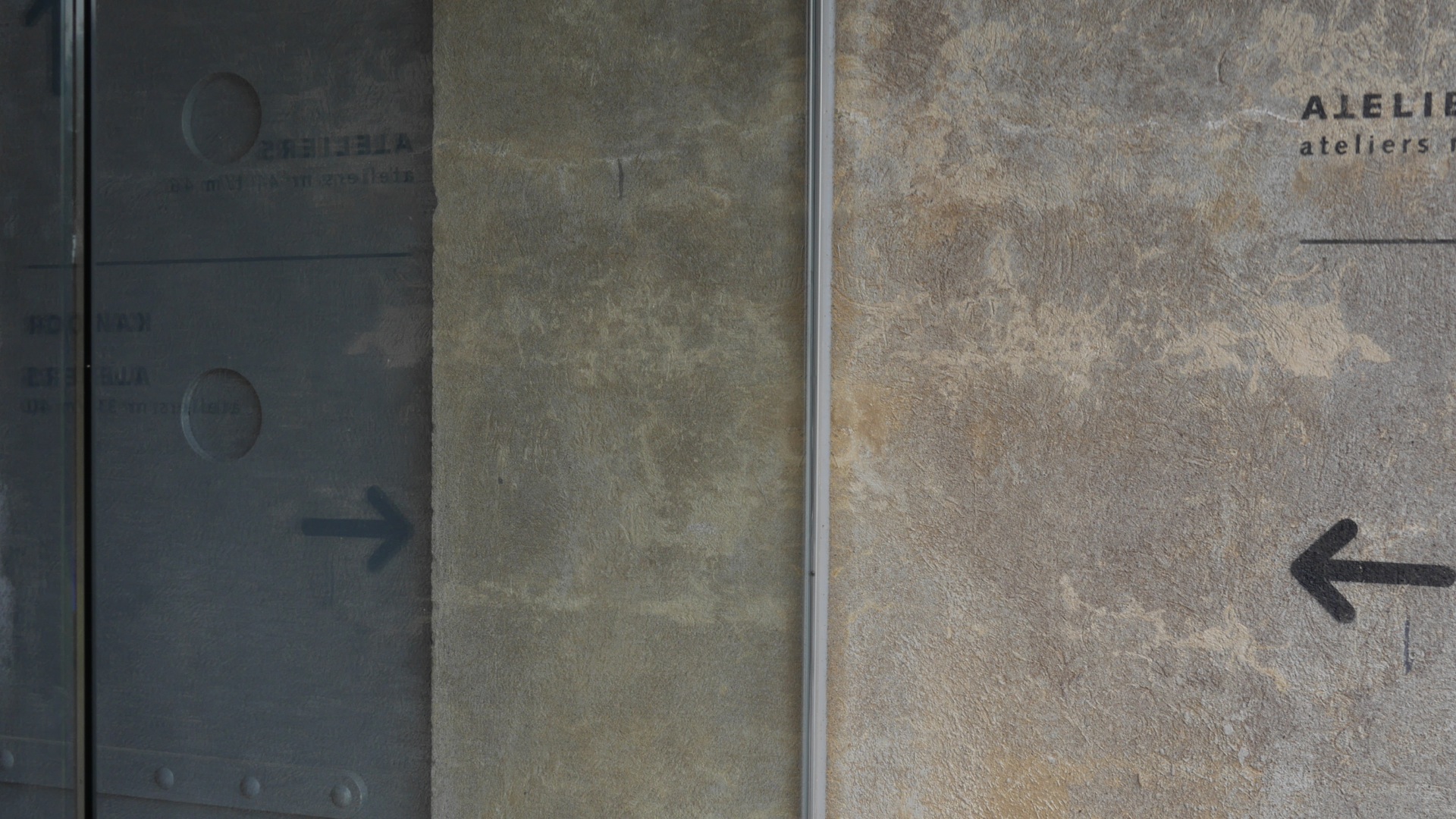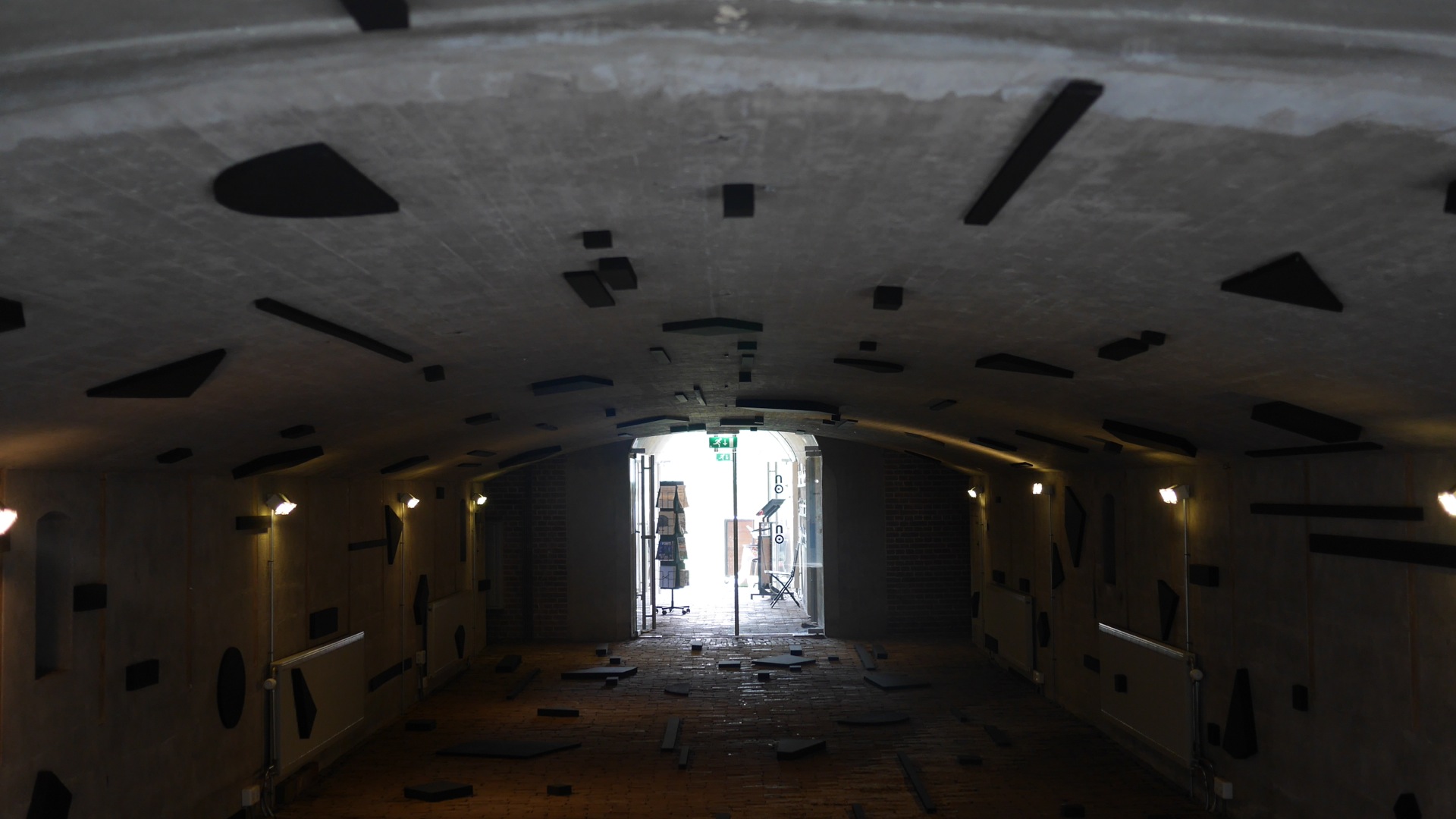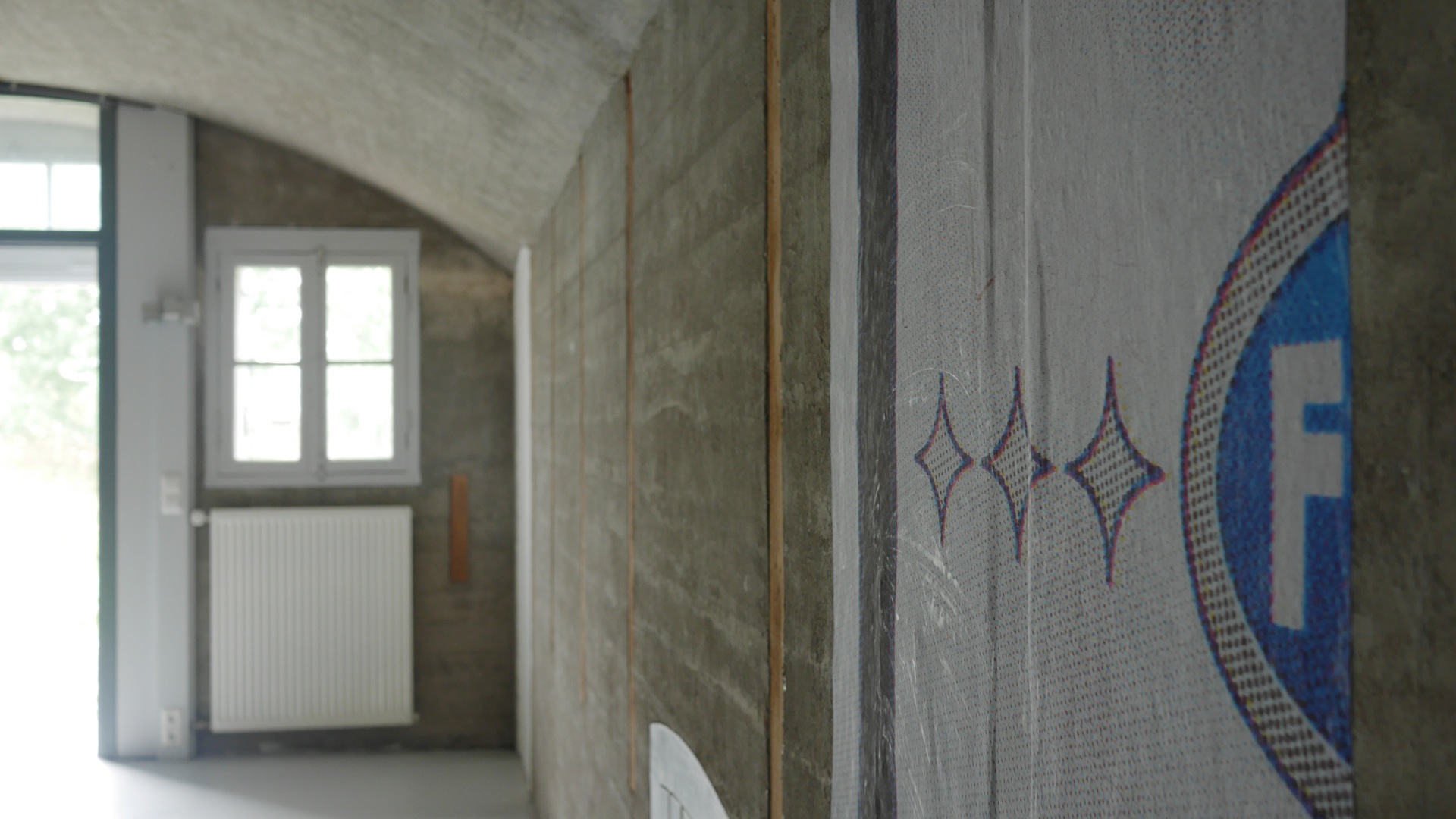 Esther Stocker‘s work on the exhibition poster is different from the one featured inside. Triangle versus Rectangle takes a step away from her former rectangle minimalism. No improvement inside the already far from rectangular Kunstfort interior.