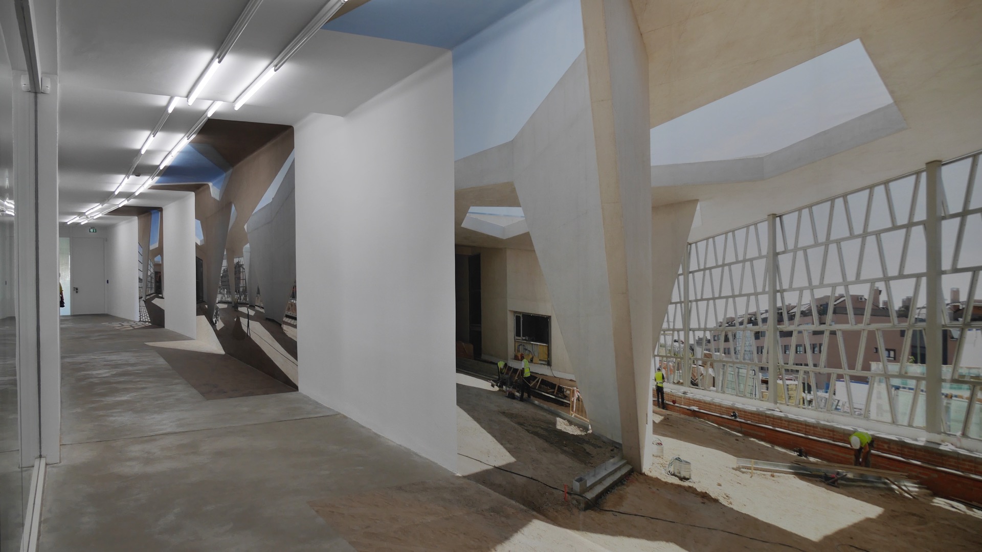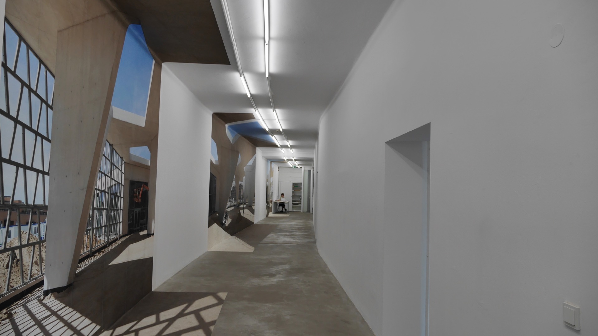 The latter features large photographs spanning from floor to ceiling and even continuing on both. Impressive scale in real life, but something strange happens when I open my photos of the exhibition: the division between the Grüntuch Ernst Lab exhibition space and the spaces in Jan Bitter‘s photos seems to vanish, resulting in photos of seemingly impossible perspectives. I was there but even I had a hard time distinguishing where the exhibition space stops and the photos begin.